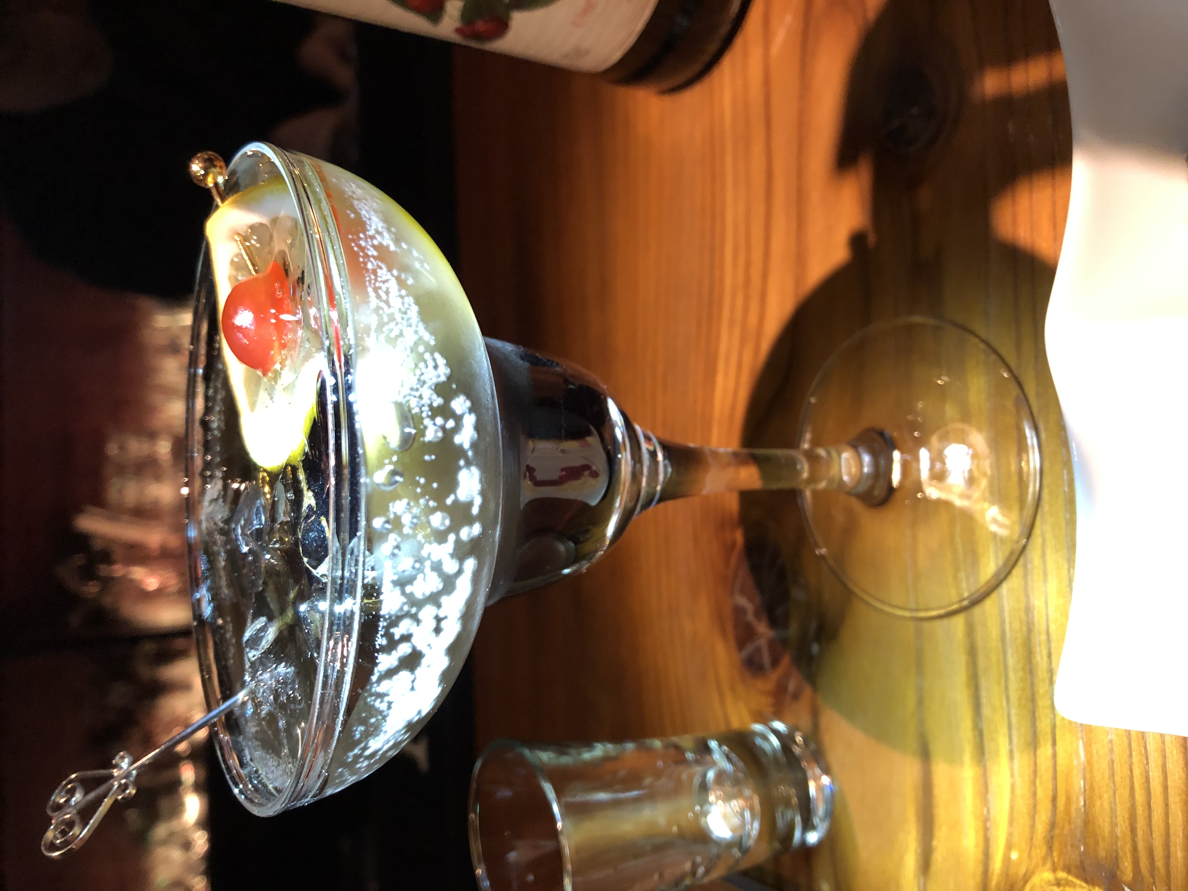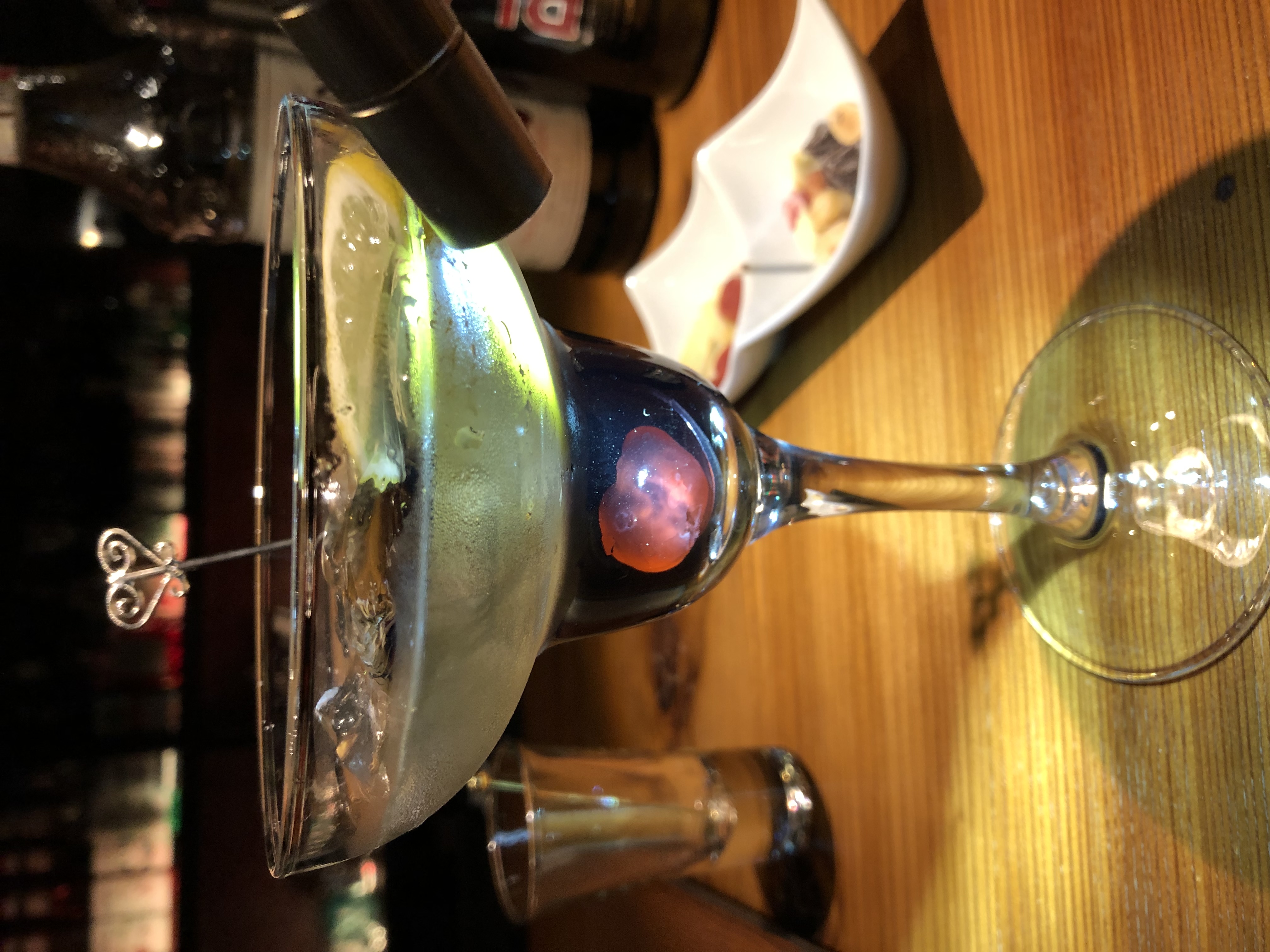 そして完飲して沈んだチェリーが露呈。ハートのマドラー兼スプーンで掬い上げる。